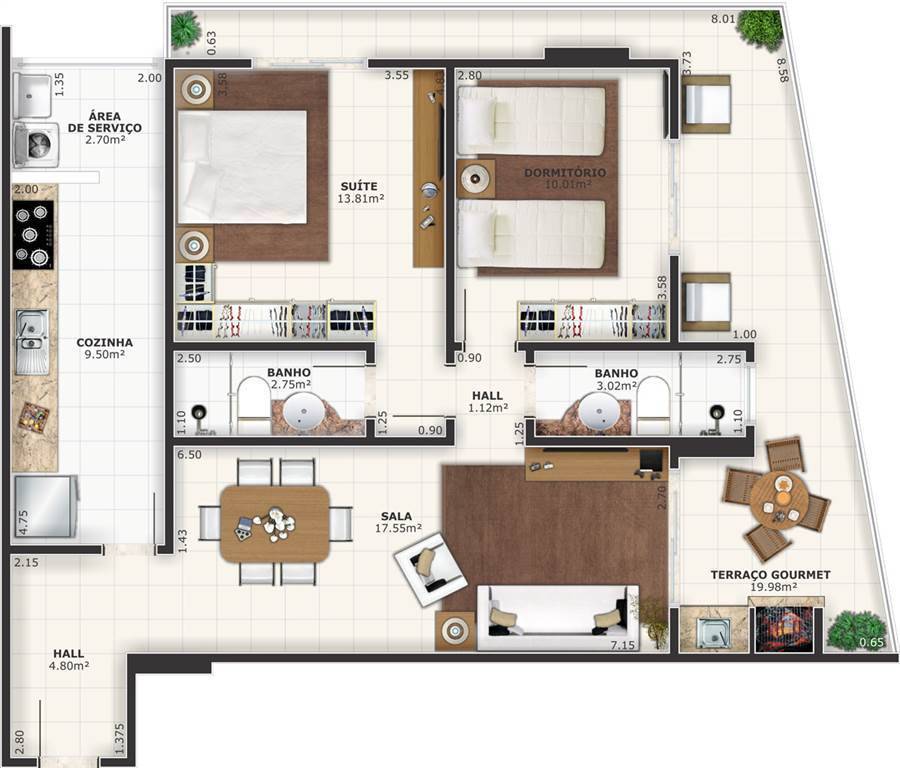 Área Útil88,11m²